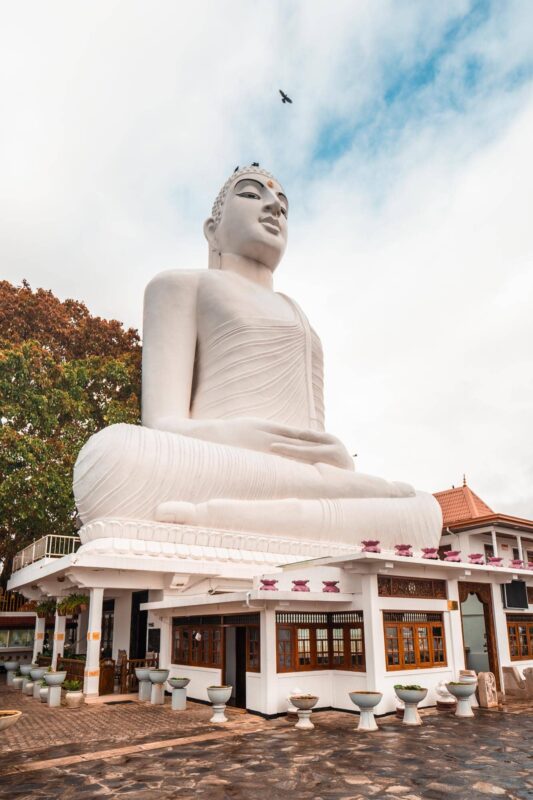 On one of the hills surrounding Kandy stands a temple with a large, white Buddha statue called Sri Maha Bodhi Maha Viharaya. This gigantic Buddha statue, standing at 27 meters, is one of the largest Buddha statues in all of Sri Lanka. From this spot, you have a beautiful panoramic view over Kandy. You can climb even higher via stairs at the back of the statue to get a view of the surrounding landscape. In the evening, it’s a magical sight to see the many lights of the city.