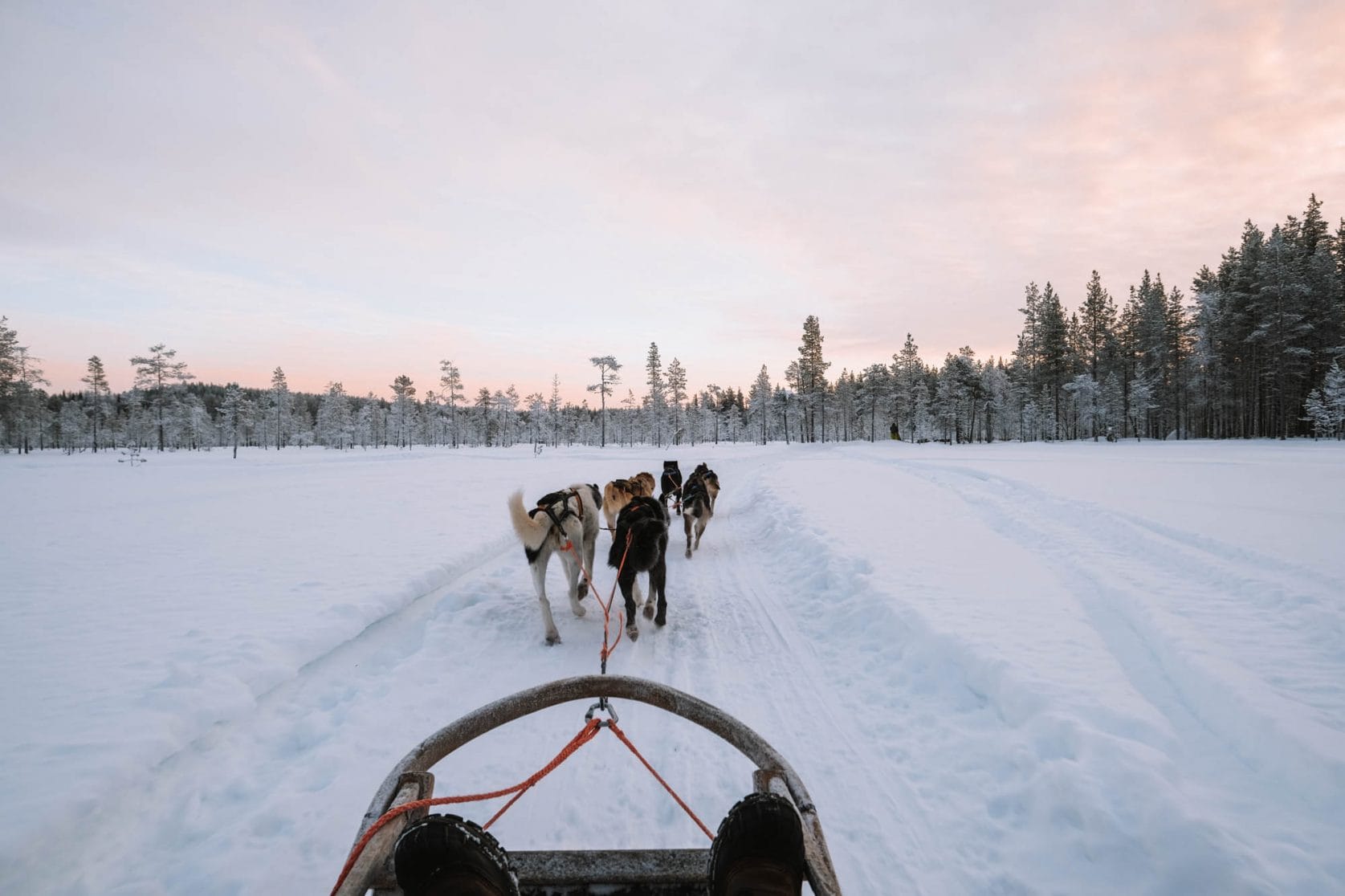 Of all the activities we did in Lapland, this was definitely our favorite. What we didn’t know beforehand is that you get to steer the sled yourself. One person sits in the sled while the other stands at the back, leaning in the curves and using the brake. Speeding through frozen lakes and snowy forests is an exhilarating experience. At the halfway point, you can switch roles, and the other person gets to steer the sled. It’s an amazing feeling to be in control! The husky dogs are incredibly enthusiastic and all they want to do is run. They have an impressive endurance, and when you stop the sled along the way, they impatiently wait for the signal to start again. After the safari, you get to spend some time cuddling with the dogs and asking questions about the husky culture in Lapland. It’s an unforgettable experience!