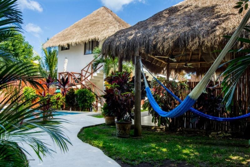 Traveling on a tighter budget through Mexico? Then Golden Paradise Hostel is perfect. You’ll stay in a comfortable double room with air conditioning, there’s a large garden with hammocks, and a shared kitchen. This is the best low-budget option on Isla Holbox!